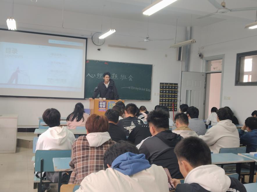 班会伊始,辅导员围绕学生适应期常见的心理困惑人际关系、学业压力等问题,重点普及了情绪调节、压力疏导的基础方法。随后,班长通过PPT演示展开心理健康知识科普,进一步引导同学们正确认识心理问题,鼓励大家主动寻求帮助、学会自我关怀。通俗易懂的讲解搭配贴合校园生活的实际场景,让在场同学对心理健康有了更直观、深刻的理解。