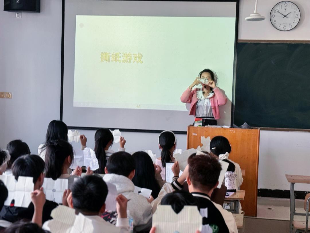 班会在独特的“撕纸游戏”中开始。同学们闭眼听从指令,对A4纸进行折叠、撕扯。睁开眼后,形态各异的“作品”引发了阵阵笑声。陈老师借此点明主题:“这个游戏告诉我们,单向沟通容易产生误解,开放的双向交流才是建立良好人际关系的基础。”
