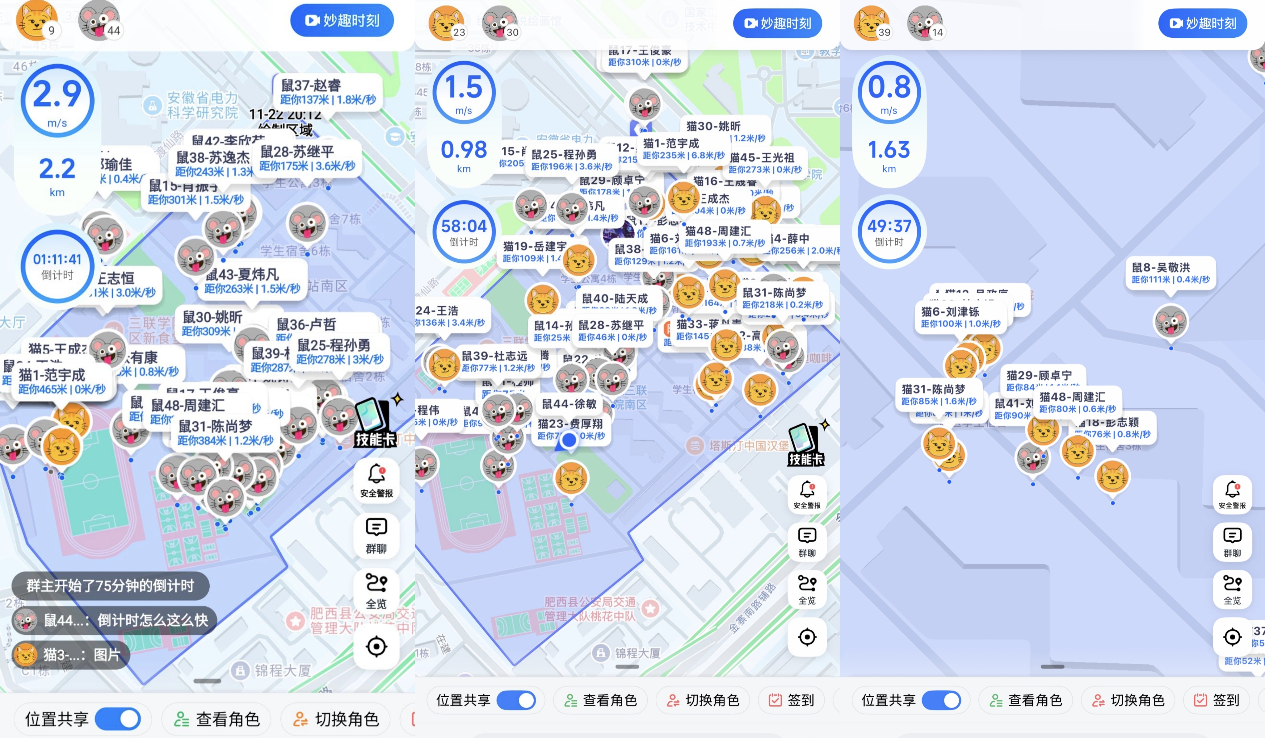 当晚,全体同学准时集合,通过高德地图随机划分猫队与鼠队,班委重申规则纪律及安全注意事项后,游戏开启后,“鼠队”借助高德地图实时定位规划逃跑路线,穿梭于校园生活区、广场围栏间灵活避险,上演多轮紧张追逐。过程中,“鼠队”凭敏锐反应多次避捕,“猫队”靠默契配合高效抓捕,现场欢呼与笑语交织,同学们穿梭于夜色校园,活力身影成为靓丽风景。