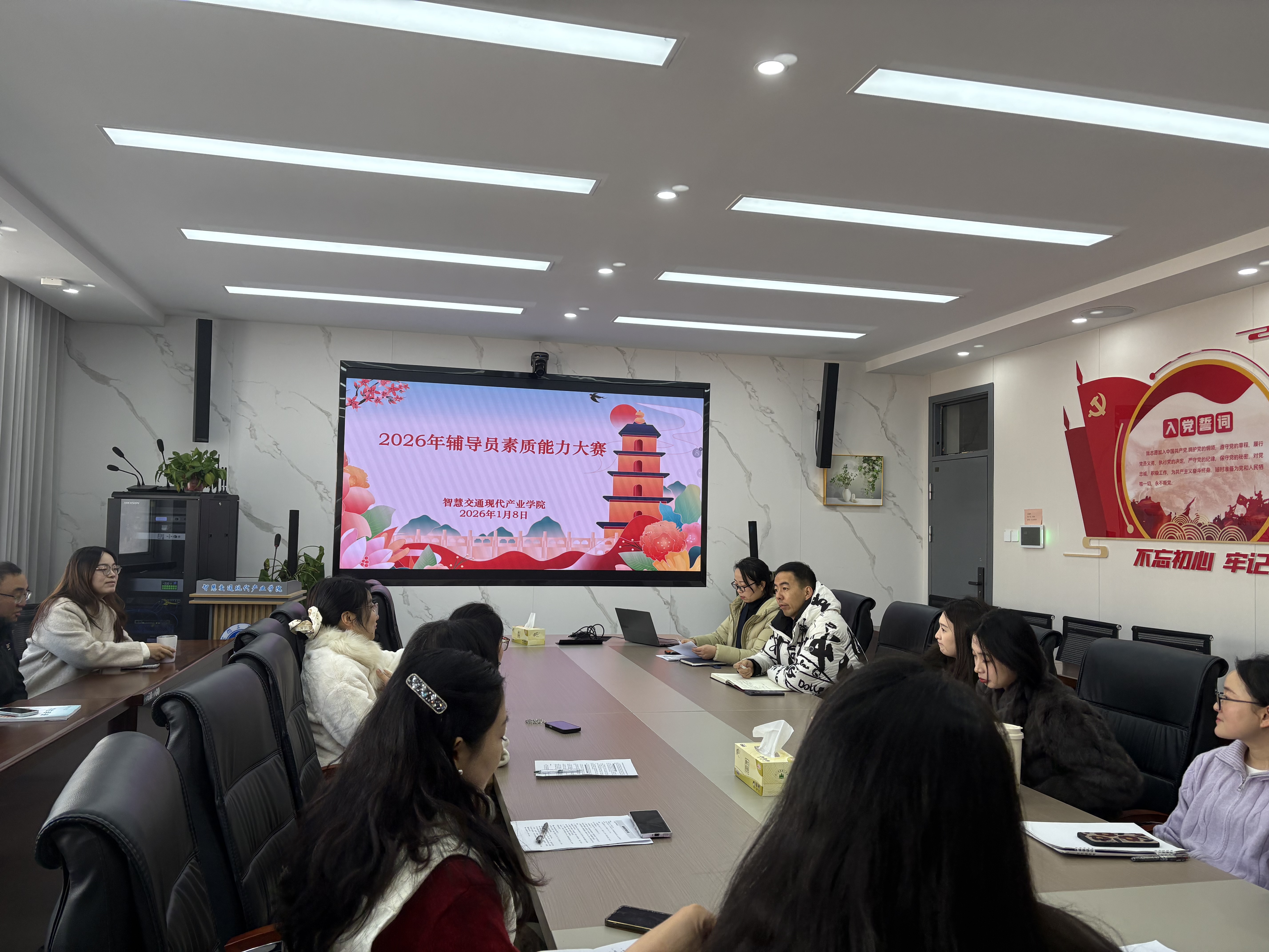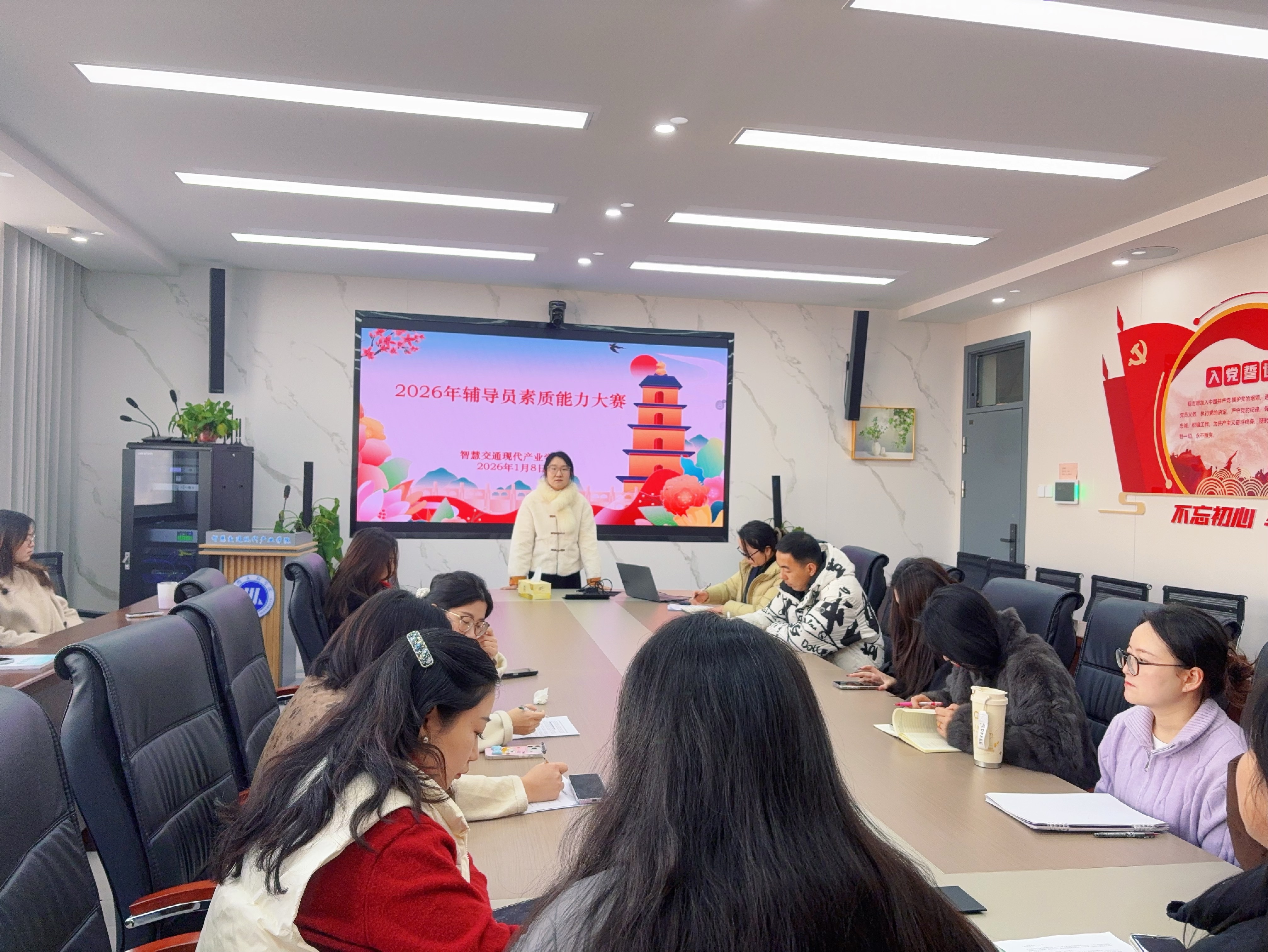 为深入学习贯彻习近平新时代中国特色社会主义思想,落实全国教育大会精神,扎实推进新时代立德树人工程,加强辅导员队伍职业化、专业化、专家化建设。1月8日,智慧交通现代产业学院举办“砺能笃行,竞展风采”为主题的辅导员素质能力大赛选拔赛。学管主任田洁、学生处蒋根灵主任出席活动并担任评委,智慧交通现代产业学院全体辅导员踊跃参与本次活动。