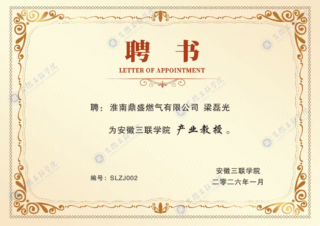 近日,安徽三联学院智慧交通现代产业学院举行产业教授聘任仪式,正式聘请淮南鼎盛燃气有限公司梁磊光、蒋顶海两位专家担任产业教授,此举是学院深化产教融合、推进校企协同育人的重要实践。