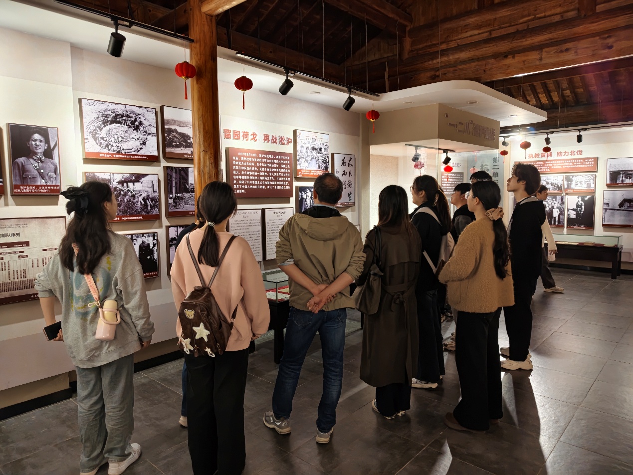 师生党员心怀崇敬之情,前往李克农故居。庄严肃穆的匾额、苍郁古梅以及巍然耸立的将军铜像,共同营造出浓郁的缅怀氛围。在讲解员的引导下,众人参观了故居的复原院落与生平事迹陈列厅。其间,200余幅历史图片、50余件革命文物以及多媒体影像,生动地展现了“传奇将军”在隐蔽战线出生入死、屡立奇功的奋斗历程。从陪伴将军的破旧羊皮箱,到惊心动魄的情报斗争史料,党员们驻足倾听讲解、凝神沉思,深切体悟到将军对党忠诚、不畏牺牲、克己奉公的崇高精神,以及隐蔽战线工作者的使命担当。