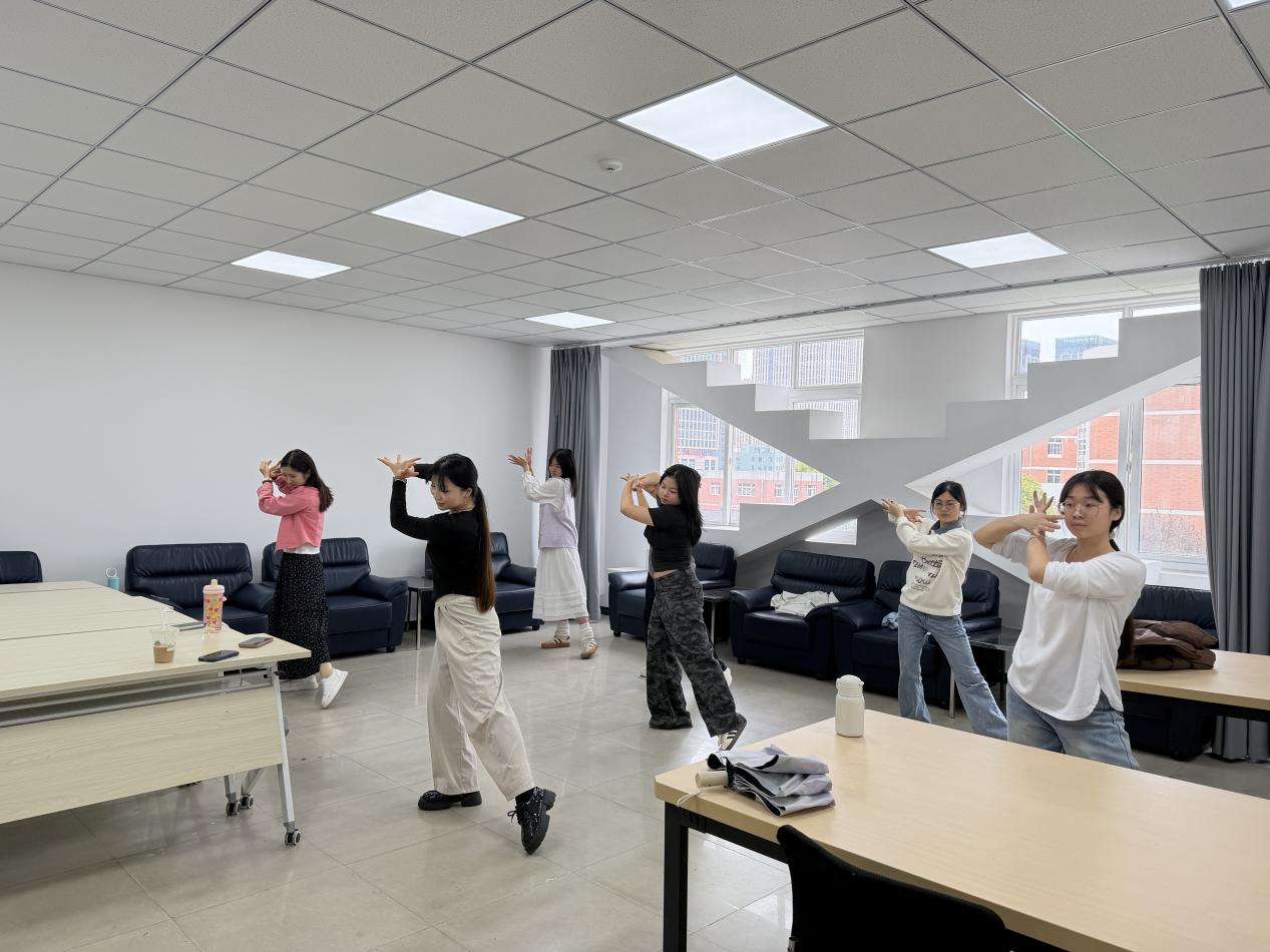 活动现场,社区活动空间成为了同学们展现青春风采的舞台。在集体舞蹈互动环节,刘国丽老师带领大家伴着欢快的节奏并肩起舞,从略显生疏到默契配合,灵动的步伐与爽朗的笑声交织,不仅让同学们在轻松的氛围中释放了学习压力,更拉近了彼此的距离,让一站式社区成为凝聚班级与学院向心力的重要纽带。